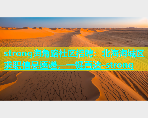 为了提升文章的SEO效果,我们在文章中自然地融入了关键词“海角路社区招聘:北海海城区求职信息速递,一键直达!”,并在标题、引言、小标题和正文中多次提及。我们还添加了内部链接,将文章与其他相关内容进行关联。为了增加文章的权威性,我们可以引用一些行业数据或研究报告,例如: